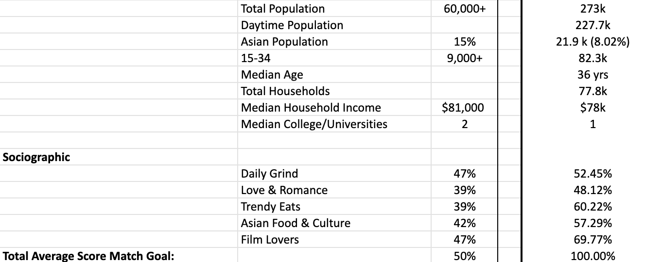 This area is populated; high-income; prone to eat out (the fast casual and full service restaurants generally do well, here); and has a high ratio of Asians, familiar with the brand - or, at the very least, familiar with the cuisine.